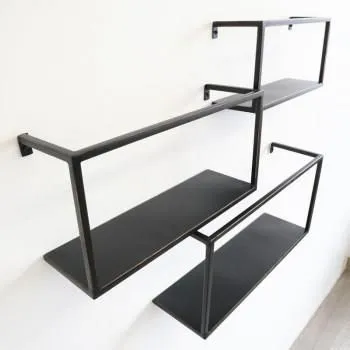 壁掛けディスプレイシェルフ(棚)です。棚の上に写真立て、花瓶、置時計など置いて壁面装飾にいかがですか。サイズをそれぞれ色々な配置に変えてディスプレイする事もできます。重さも軽く、取り付けも釘2本で簡単に取り付け可能です。