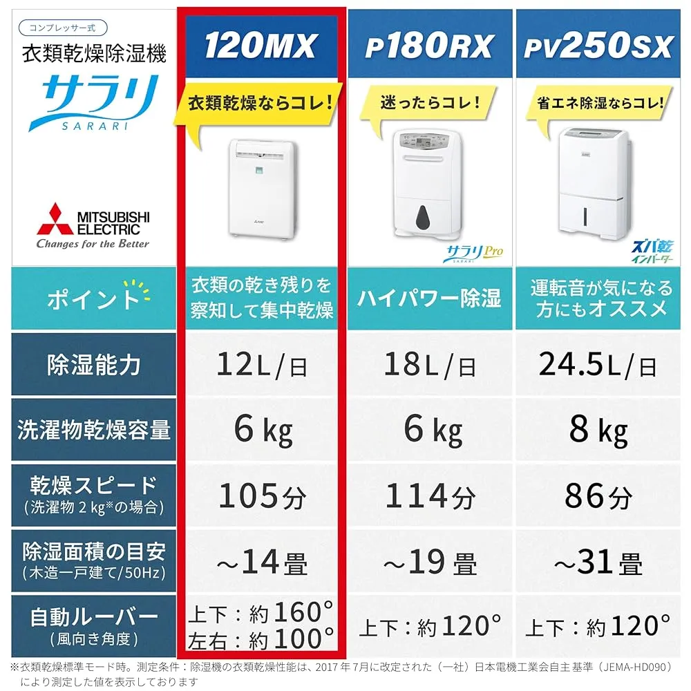 三菱電機 Mitsubishi 衣類乾燥特化モデル 12L コンプレッサー式 衣類乾燥除湿機 省エネ 部屋干し 花粉 ムーブアイ 連続排水OK 停電復帰機能 MJ-120MX-W