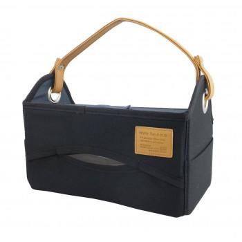 リモコンラックとティッシュカバーが1つになった、折りたたみできる便利な持ち手付きバスケットです。テーブルの上の整理はもちろん、色々な場面で便利にお使いいただけます。 本体に底板を入れて、仕切り板を面ファスナーで固定するだけの簡単組み立て。お好きな位置で仕切ることができます。 ティッシュカバー側の仕切り板は、ボックスティッシュの厚みに合わせて調節可能です。