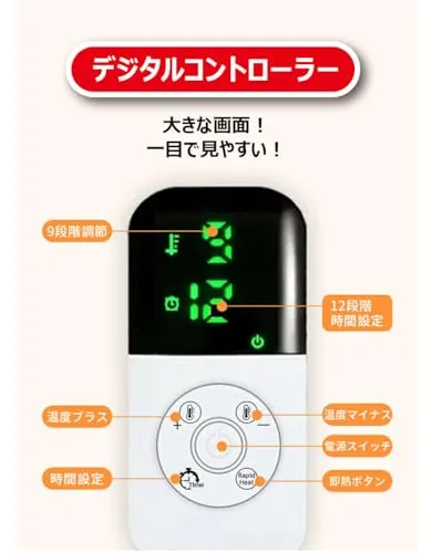 【機能】 9段階温度調節可能/タイマー機能付き ケーブル長さ:185cm 日本語説明書付き