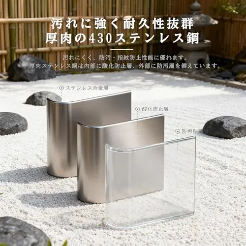 【ステンレススチール素材&密閉無臭設計】厚手 430 ステンレススチール製で汚れに強く耐久性抜群,内部酸化防止層・外部防汚層で長期綺麗を保てる。蓋の密着封じ目が異臭拡散を防ぎ,虫寄せやペットによるごみ散乱も抑制,清潔環境を維持可能。