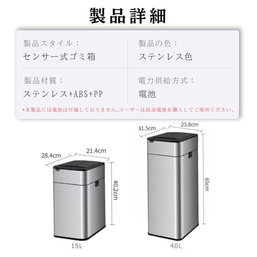 センサー付きゴミ箱 スマートセンサーごみ箱 15L ステンレススチール製 自動開閉 防汚防指紋 省エネ・密閉無臭 双方向開蓋 スライト式 キッチン・浴室対応 (15L)t