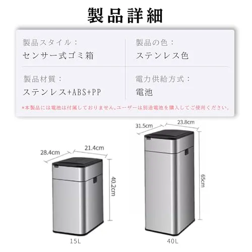 【2 サイズ選べる大容量】 15L と 40L の 2 つのサイズからお選びいただけます。どちらも大容量で、キッチンや部屋で出るごみをたっぷり収納,ごみ捨ての手間を大幅に減らします。
