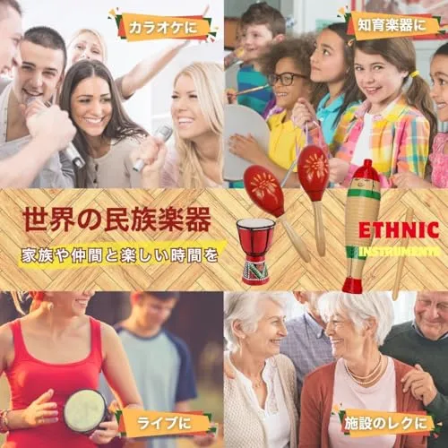 【リズム感を養う知育楽器としてもおすすめ】 ジャンベとマラカスとギロのセットは、遊びながらリズム感を育む「知育楽器」としても活用できます。幼稚園や保育園でのお遊戯会やリトミック教室、音楽会などでも、音楽の基礎を自然に身につけるのにぴったり。家庭用のおもちゃとしても、お子様の成長をサポートする頼もしい民族楽器セットです。リズムに合わせて体を動かすことで、感性や集中力も高められます。