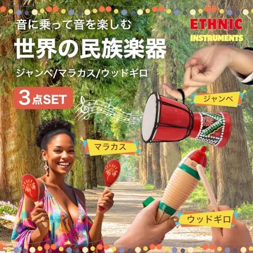 【迅速に発送】SALUDABLE ジャンベ ウッドギロ マラカス 楽器 太鼓 ウッドブロック 民族楽器 3点セット