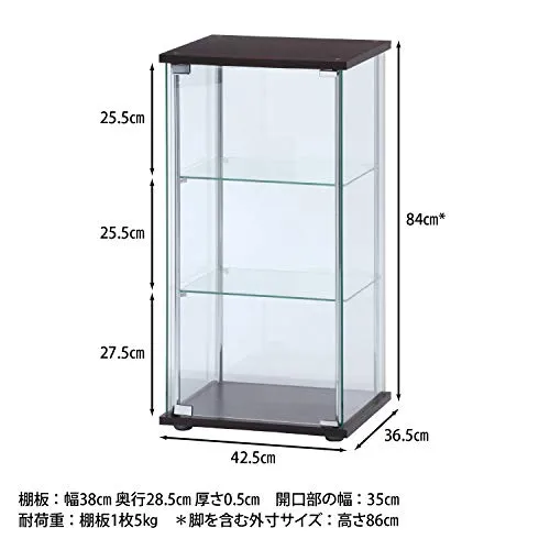 【迅速に発送】不二貿易 コレクションケース フィギュアケース 3段 幅42.5×奥行36.5×高さ86cm ブラウン 強化ガラス 全面ガラス 組立商品 96049
