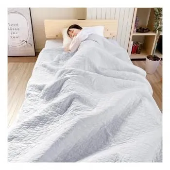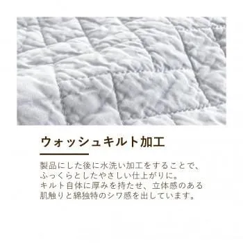 オールコートン100%のキルトケットです。晒し綿わたとは、原綿の不純物を取り除き、漂白(精練漂白工程)をしっかりと施した綿のことです。
