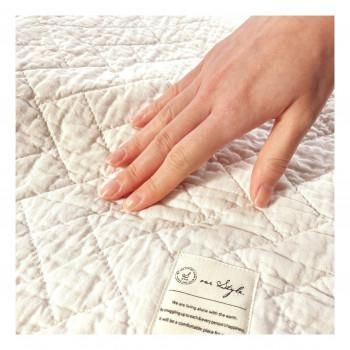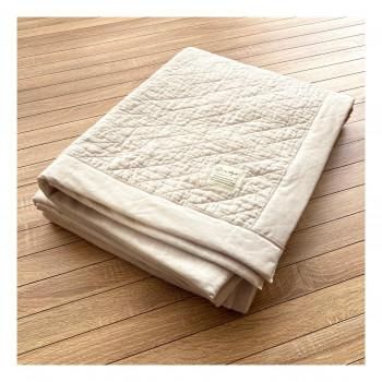 オールコートン100%のキルトケットです。晒し綿わたとは、原綿の不純物を取り除き、漂白(精練漂白工程)をしっかりと施した綿のことです。