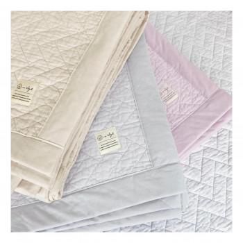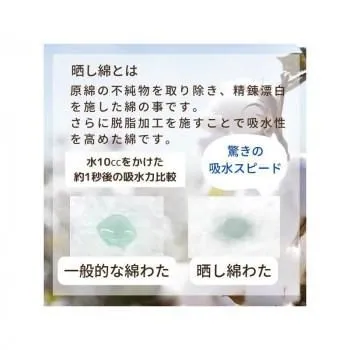 オールコートン100%のキルトケットです。晒し綿わたとは、原綿の不純物を取り除き、漂白(精練漂白工程)をしっかりと施した綿のことです。