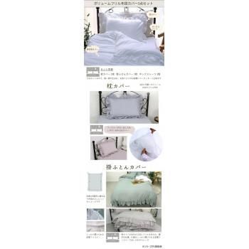 大人可愛いフリルの付いた布団カバー3点セットです。