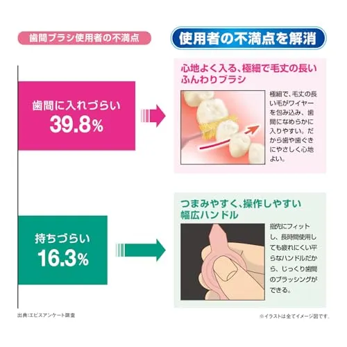 ■キャップの材質:ポリプロピレン 使用方法 ネック部を曲げれば奥歯の歯間にも届く。幅広ハンドルが軽くつまむだけで指先にフィットするので操作しやすく、長時間使用しても疲れにくい。柄の延長もできる保管キャップ付。 歯間ケアにも心地よさを追求した、「極歯間ブラシ」。いつもの歯間ケアが至福の時間に。 歯学博士が推奨するブラシ設計。極細で毛丈の長い毛がワイヤーを包み込みながら歯間になめらかに入るので歯や歯ぐきにやさしい。また、狭い歯間から広い歯間を1サイズでしっかり清掃できる。 ネック部を曲げれば奥歯の歯間にも届く。幅広ハンドルが軽くつまむだけで指先にフィットするので操作しやすく、長時間使用しても疲れにくい。 柄の延長もできる保管キャップ付。 最後までご確認頂き誠にありがとうございました。 上記をご確認頂き、ご購入いただけましたら幸いです。 何かご不明な点がございましたらお気軽にメッセージからお問い合わせ下さい。
