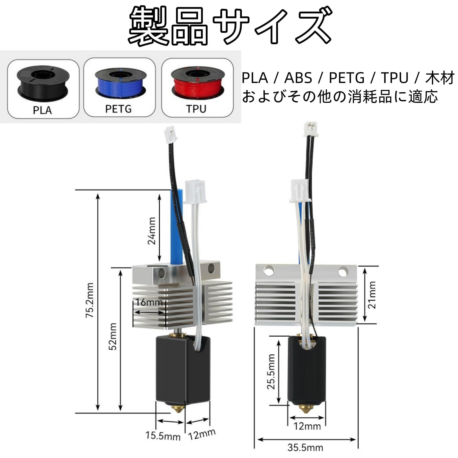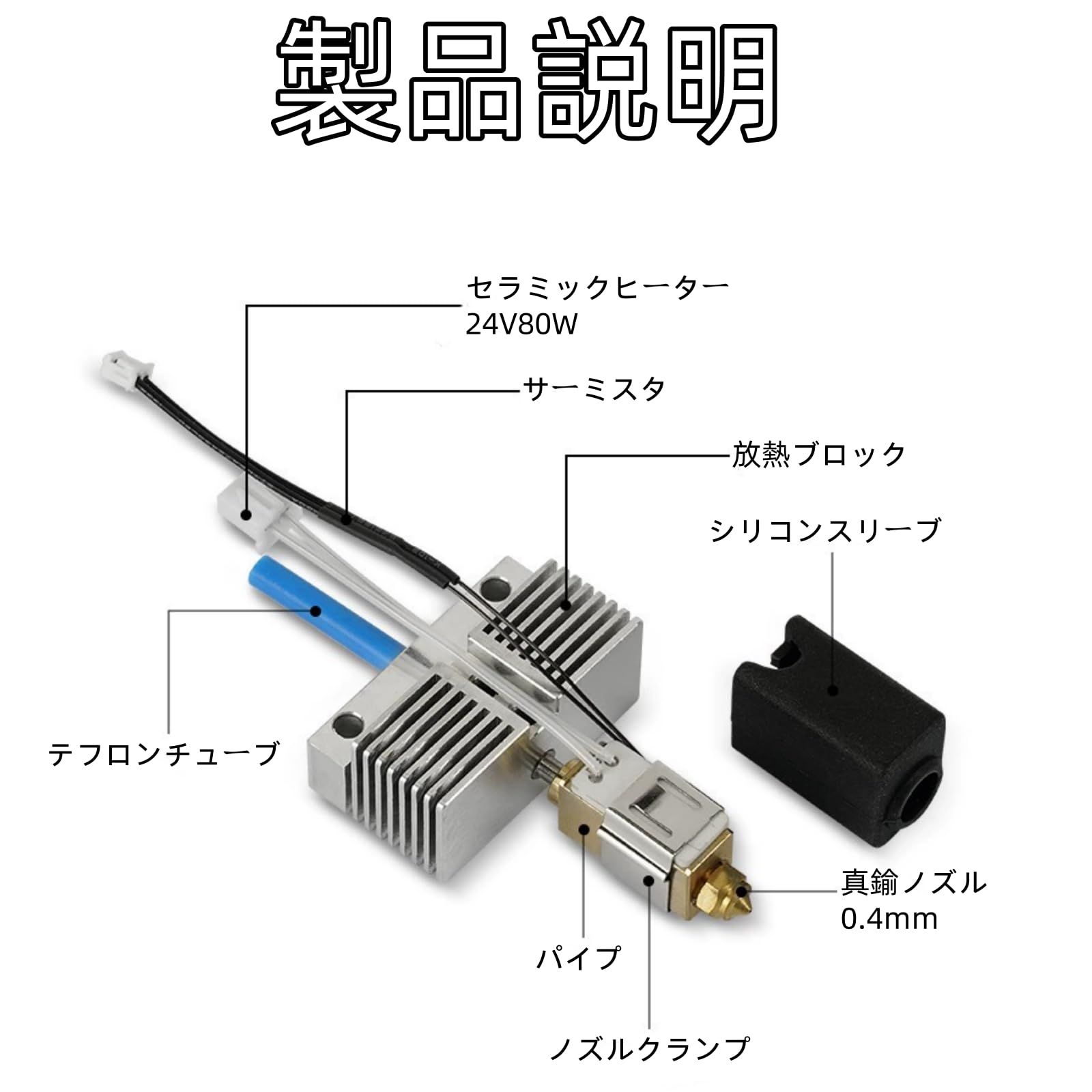 新着商品 3D プリンターホットエンドキット 組み立て 全金属製ホットエンド 0.4mm 3D プリンター真鍮ノズル付き 全金属製ヘッド 加熱ブロック 3D プリンターアクセサー用