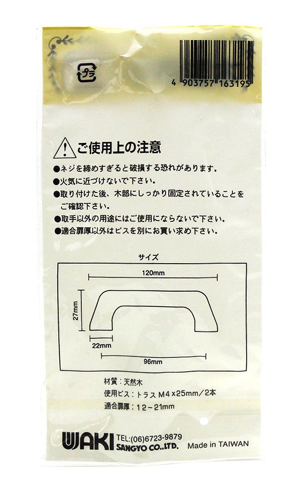 新品 和気産業(Waki Sangyo) 木製取手 インテリア 家具 取っ手 摘み 木地 96mm TW-319