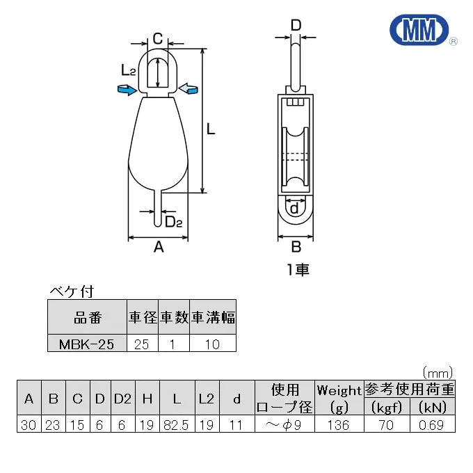 ●ロープを通し、荷物等の吊り上げや、引っ張り作業に使用します。