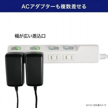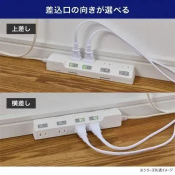 LEDランプ仕様。独立スイッチ。雷から接続機器を守る耐雷サージ付。プラグに雷ガード表示LED付。AC差込口はホコリ・ゴミの侵入を防ぐ扉付。熱や衝撃に強いPBT樹脂採用。コードは、断線に強い保護被ふく。ACアダプター用差込口。本体の向きによって、差込口向きが選べる。