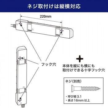 LEDランプ仕様。独立スイッチ。雷から接続機器を守る耐雷サージ付。プラグに雷ガード表示LED付。AC差込口はホコリ・ゴミの侵入を防ぐ扉付。熱や衝撃に強いPBT樹脂採用。コードは、断線に強い保護被ふく。ACアダプター用差込口。本体の向きによって、差込口向きが選べる。