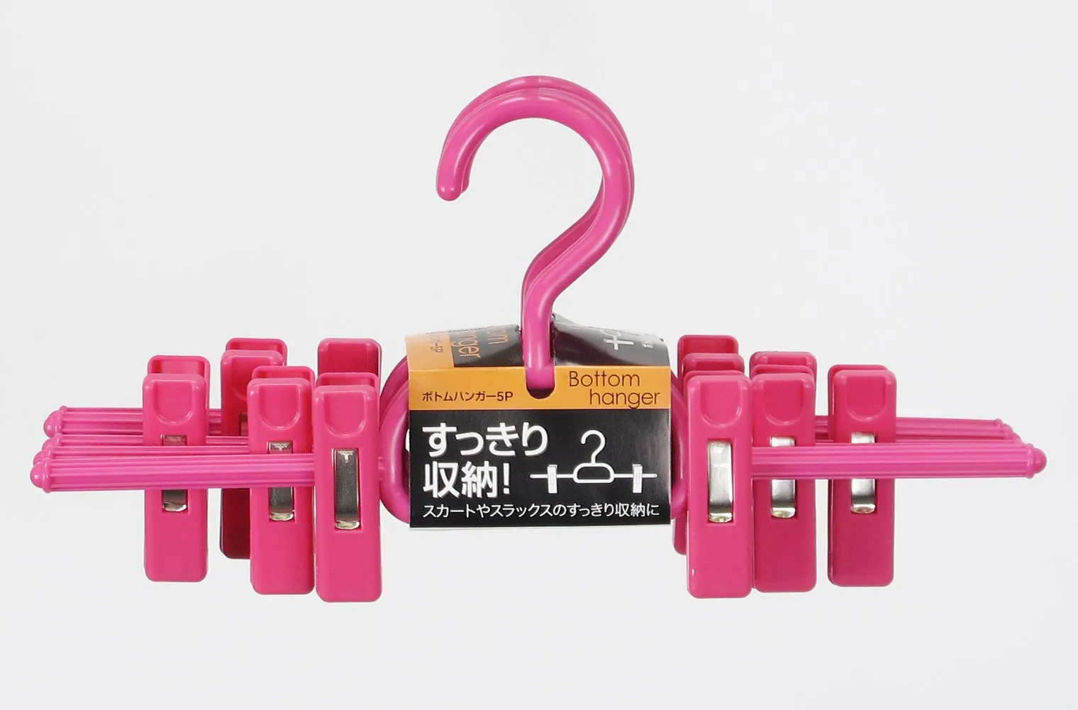新品 サワフジ 洋服ハンガー すっきり収納 ボトムハンガー ピンク 幅310mm 5本組 省スペース クリップ付 スボン パンツ スラックス スカート ジーンズ タオル プラスチック 収納 クローゼット洋服タンス レディース メンズ 衣類 BO-05 (× 2