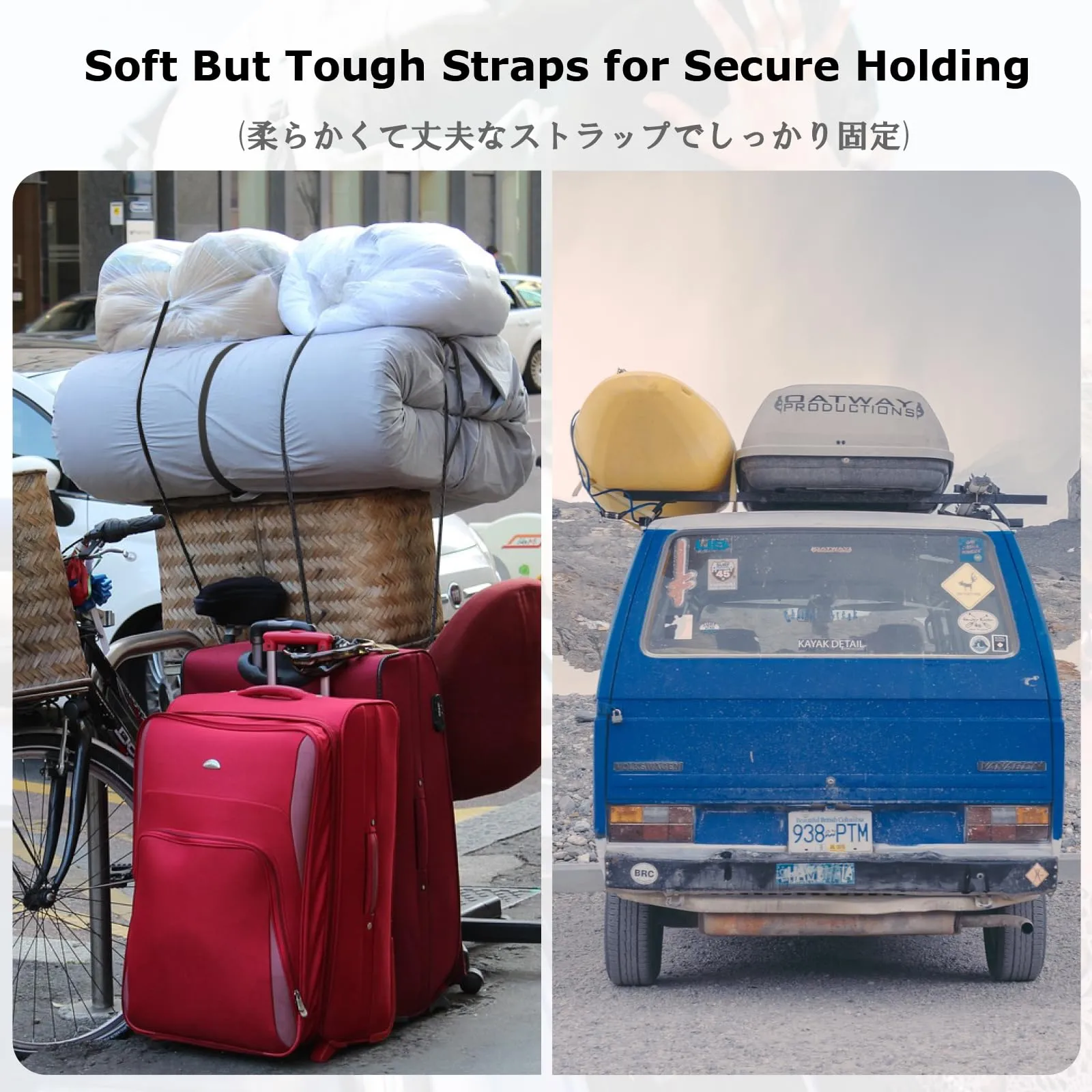 【利用シーン】多用途荷締機ベルトは荷物梱包/自動車荷台の品物固定/倉庫棚の整理/車ルーフキャリア固定用/台風地震大雨などの災害対応グッズです