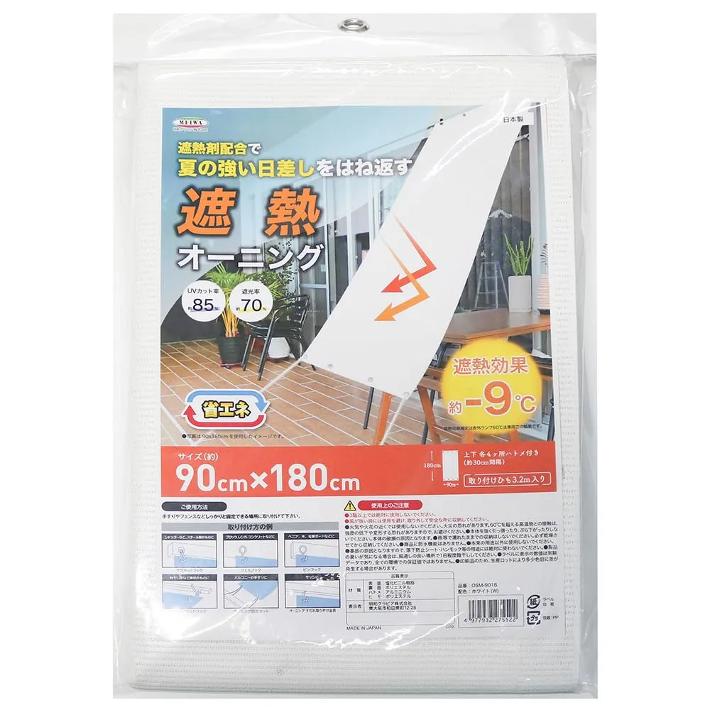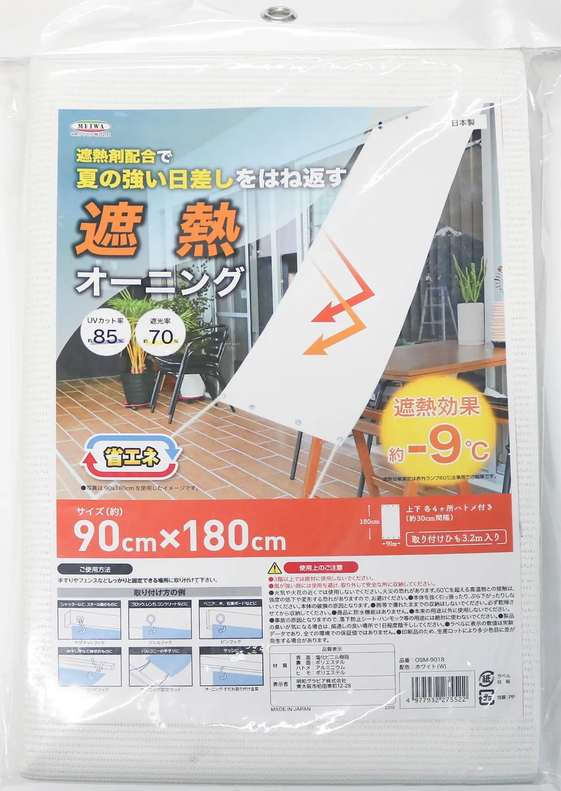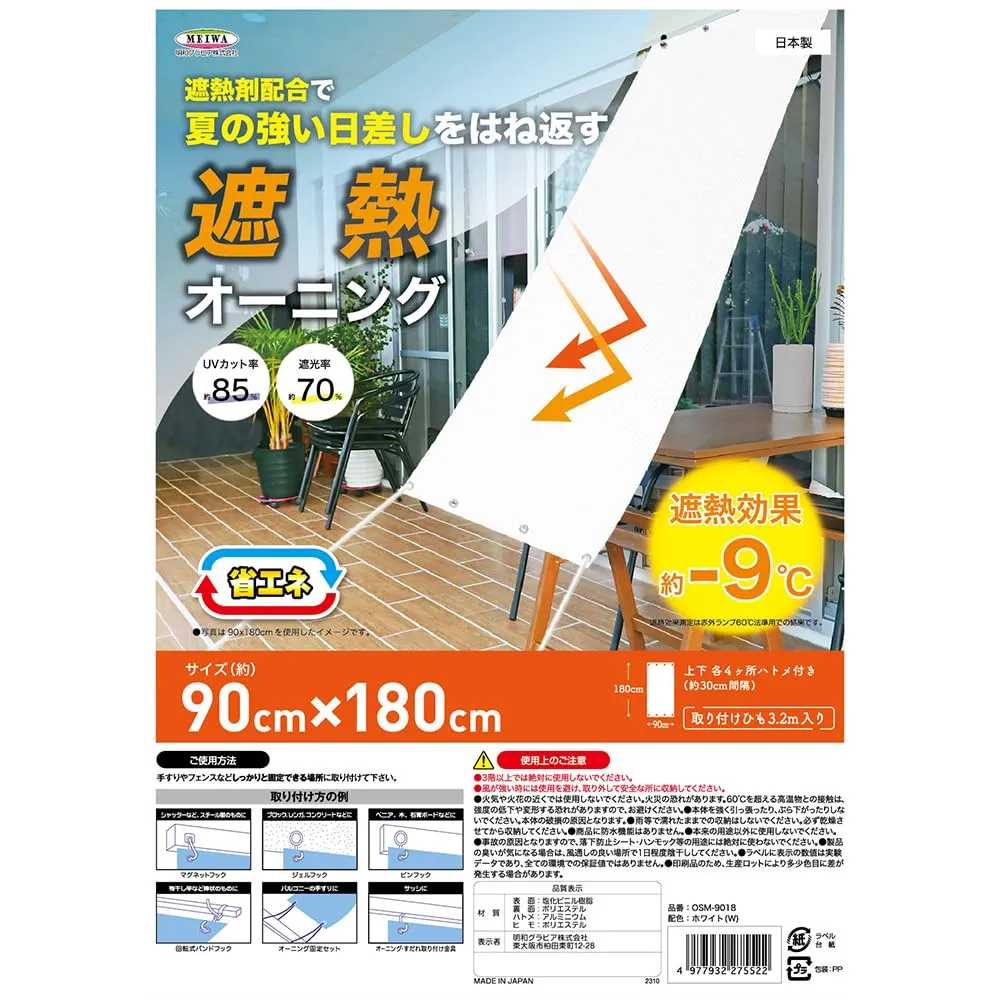 新品 明和グラビア(Meiwa Gurabia) 遮熱オーニング ホワイト 90×180cm 遮熱効果約-9度/遮光約70%/UVカット約85% OSM-9018