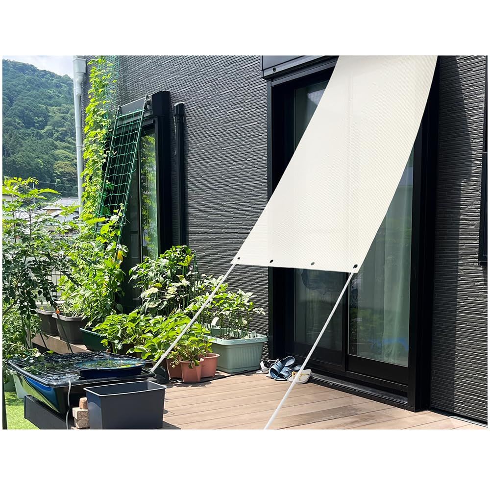 【特徴】 ・表面に遮熱剤を配合しているため、暑くて強い夏の日差しを跳ね返す ・紫外線をカットするため、お肌やお部屋の日焼け対策にもおすすめ ・メッシュのような網目のため程よく風を通す ・透けにくいため目隠し対策にもおすすめ