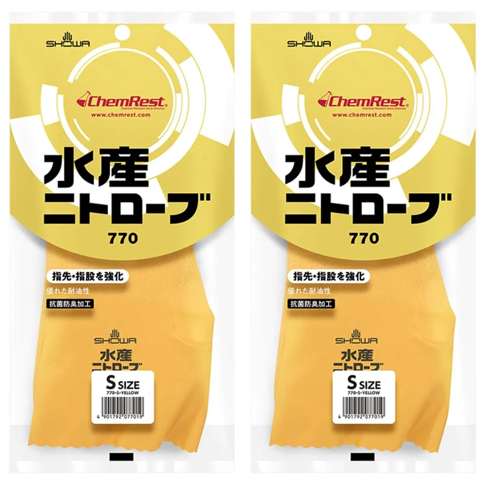 新品 ショーワグローブ(Showaglove) 作業用手袋 耐油 No770 水産ニトローブ Sサイズ 1双 2個セット イエロー