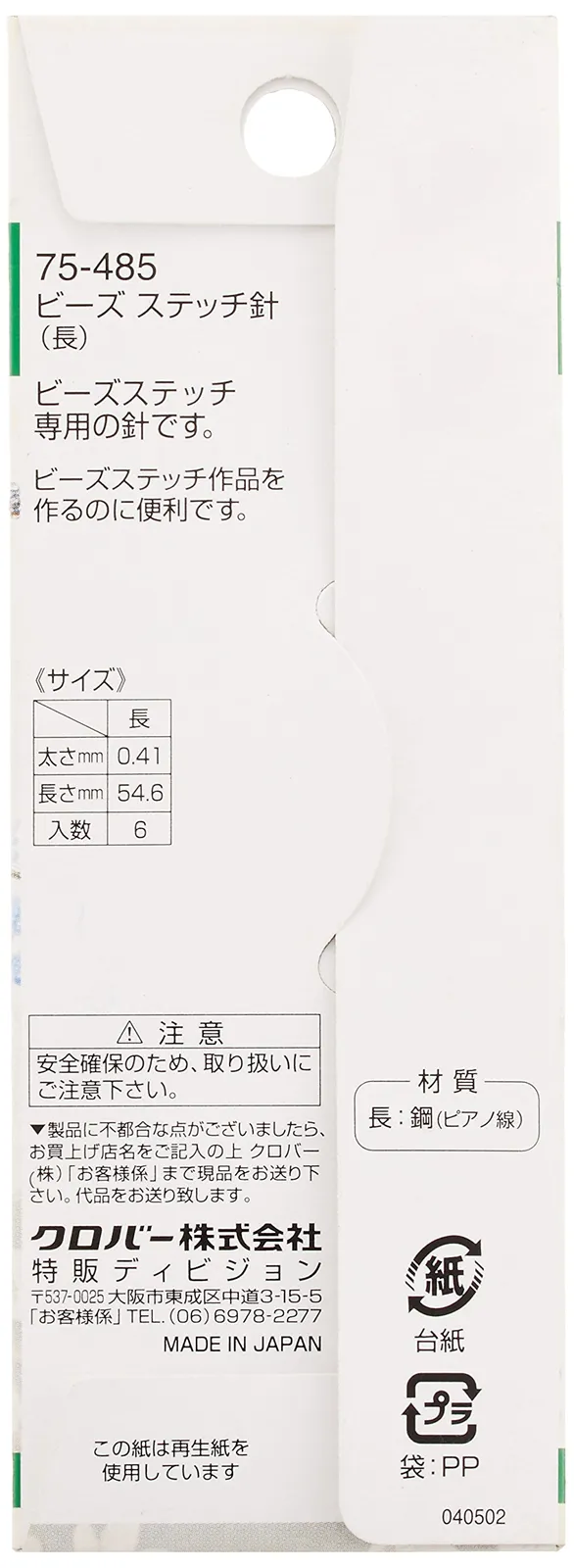 新品 Clover ビーズステッチ針 長 6本入り 75-485 (× 2)