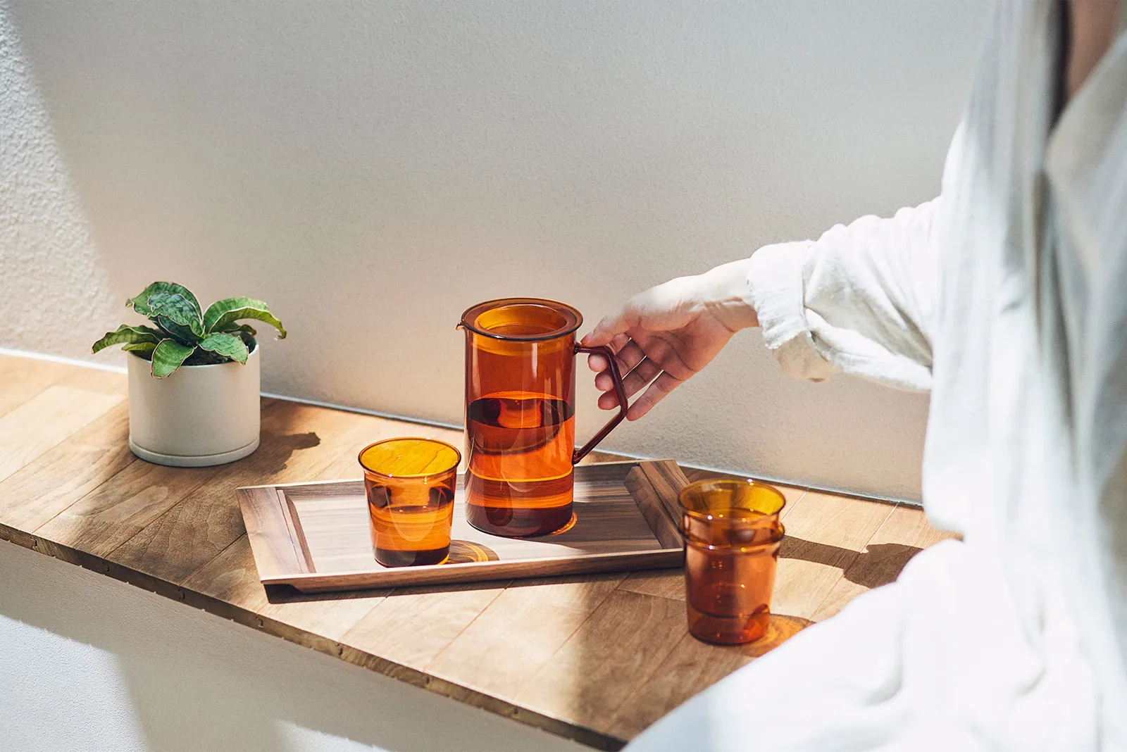 使う人の動作を優美に見せるグラスウェア「妨げないデザイン」をコンセプトとした、シンプルで整然とした美しさをもつCAST。二重構造のカップの口部は、唇を軽くあてただけでドリンクがすっと口先に注がれるように、わずかに外側に広がっています。機能美を備えた品位ある佇まいがあらゆるシーンに映えます。