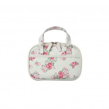 上品な花柄がプリントされた、持ち運びに便利な持ち手付きバッグの中は、入れるものに合わせて仕切りをしたり外したり位置を変えられます。