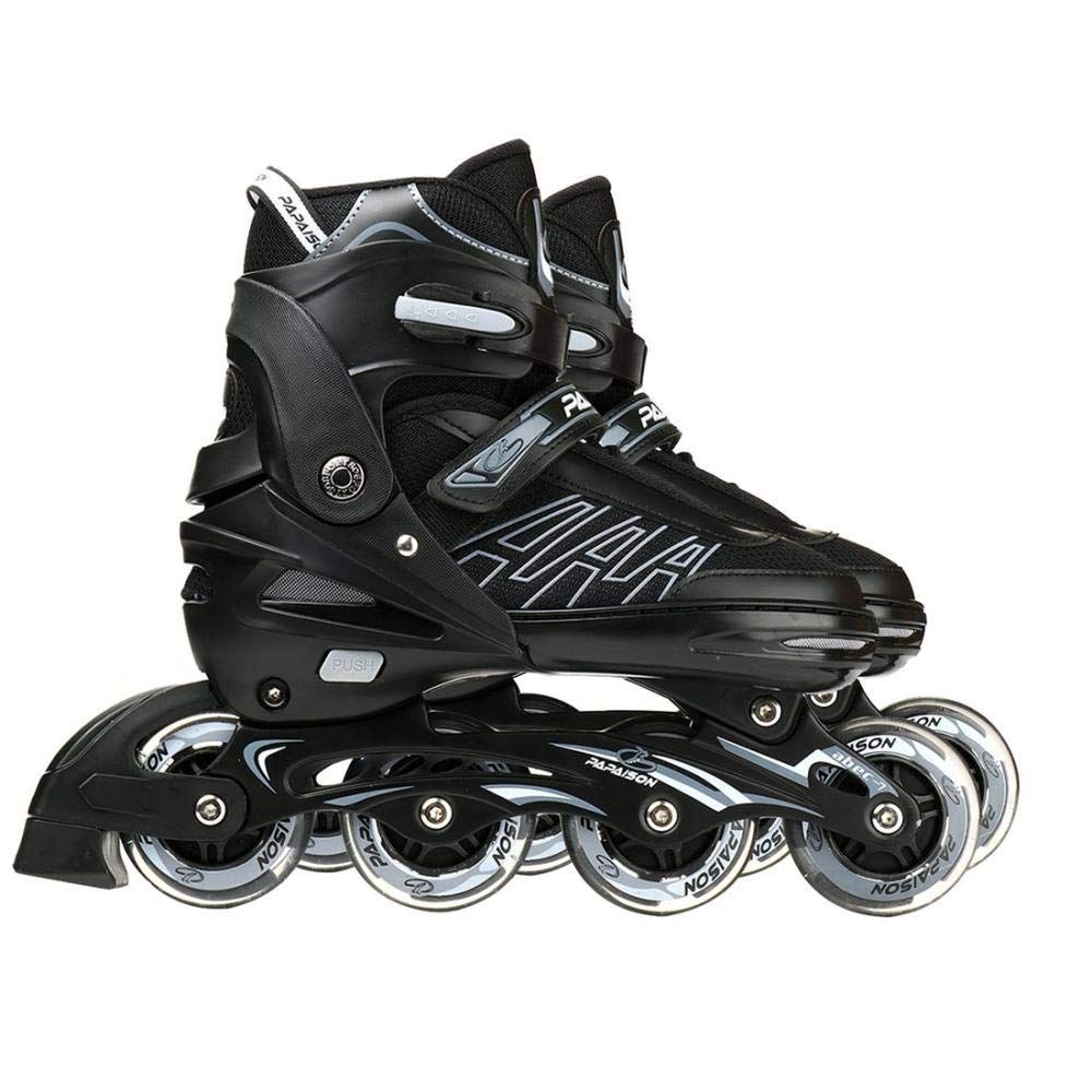 【迅速に発送】[JIMSHUINIO] インラインスケート ローラースケート 大人 子供用 光る サイズ調整可能 女の子 男の子 キッズ ジュニア 学生 初心者向け 運動 通気 安全 耐久 静音 スポーツ アウトドア (ブラック,L(37-40)内寸 23-2