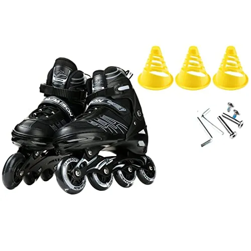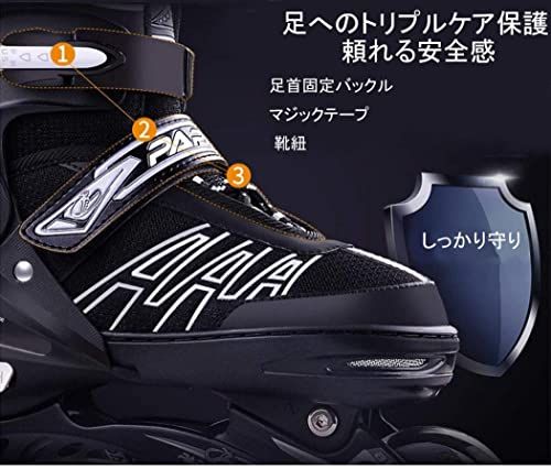 【迅速に発送】[JIMSHUINIO] インラインスケート ローラースケート 大人 子供用 光る サイズ調整可能 女の子 男の子 キッズ ジュニア 学生 初心者向け 運動 通気 安全 耐久 静音 スポーツ アウトドア (ブラック,XL(41-44)内寸26.5