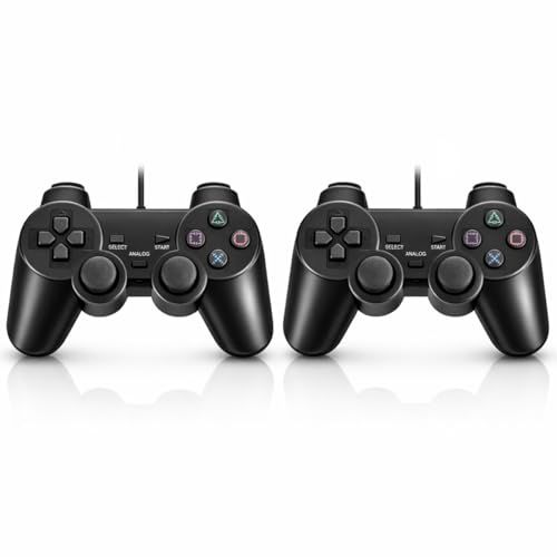 【迅速に発送】PS2 コントローラー 2個セット 有線 プレイステーション2 対応/デュアルショック互換 振動機能付き アナログ 十字キー / プレステ2 & PS1 全機種対応 ブラック