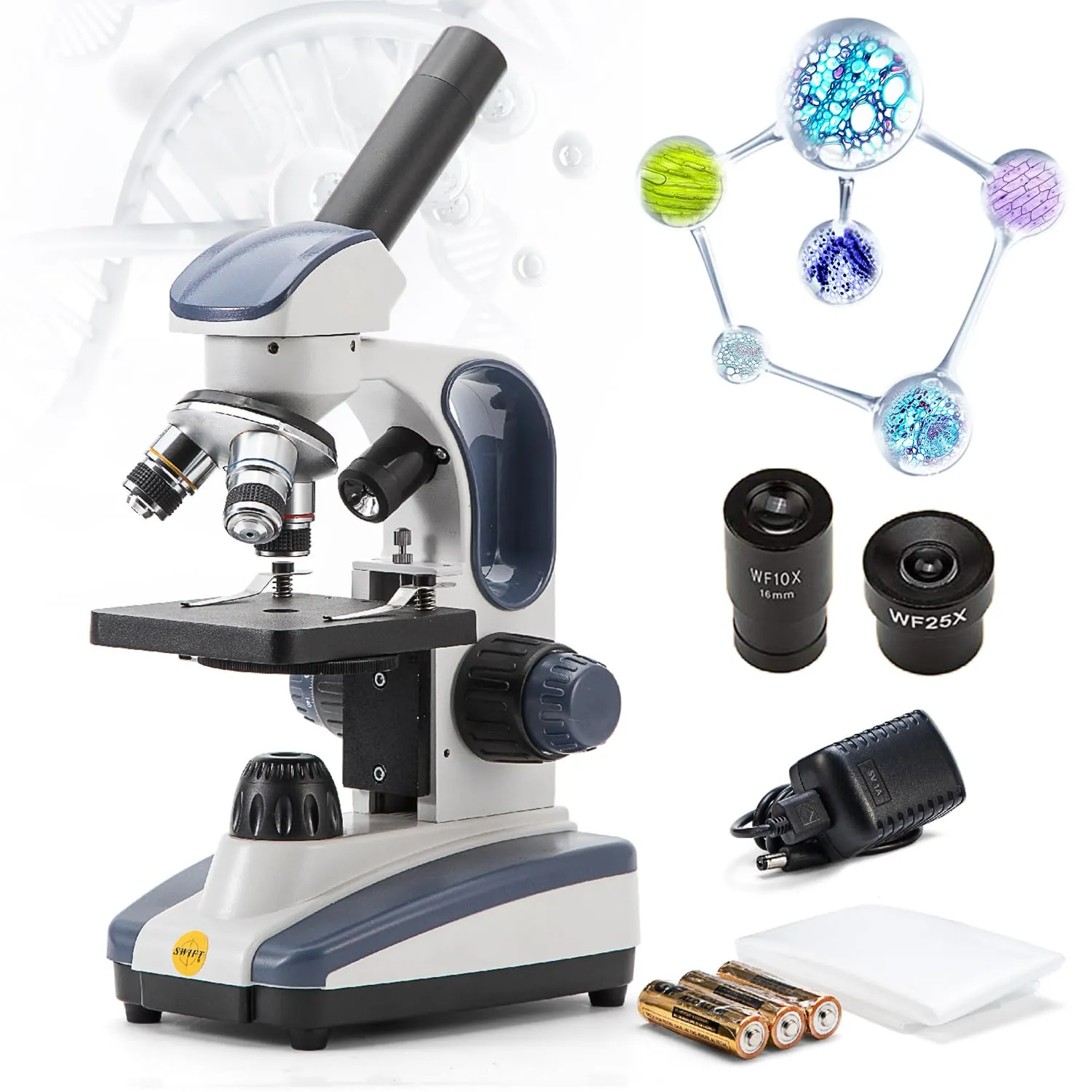 【迅速に発送】SWIFT SW200DL 人気 小学生用顕微鏡 金属材質 40X-1000X単眼ヘッド 回転式 ガラス光学、広視野接眼レンズ25倍付、一軸式粗微動ハンドル、持ち運びハンドル付き、電源に接続するタイプ