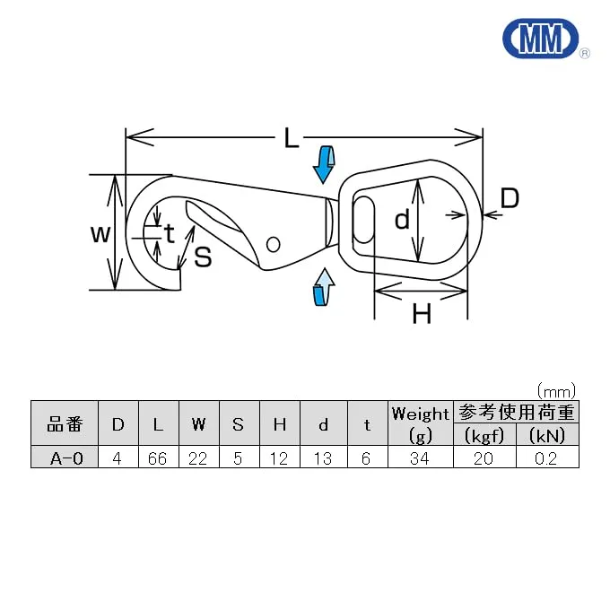 新品 MM 水本機械製作所 SUS304 ステンレス スイベルスナップ A-0