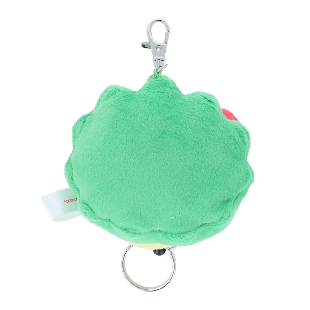 カバンにつけたり鍵などの目印に便利なリール付ぬいぐるみキーホルダーです。