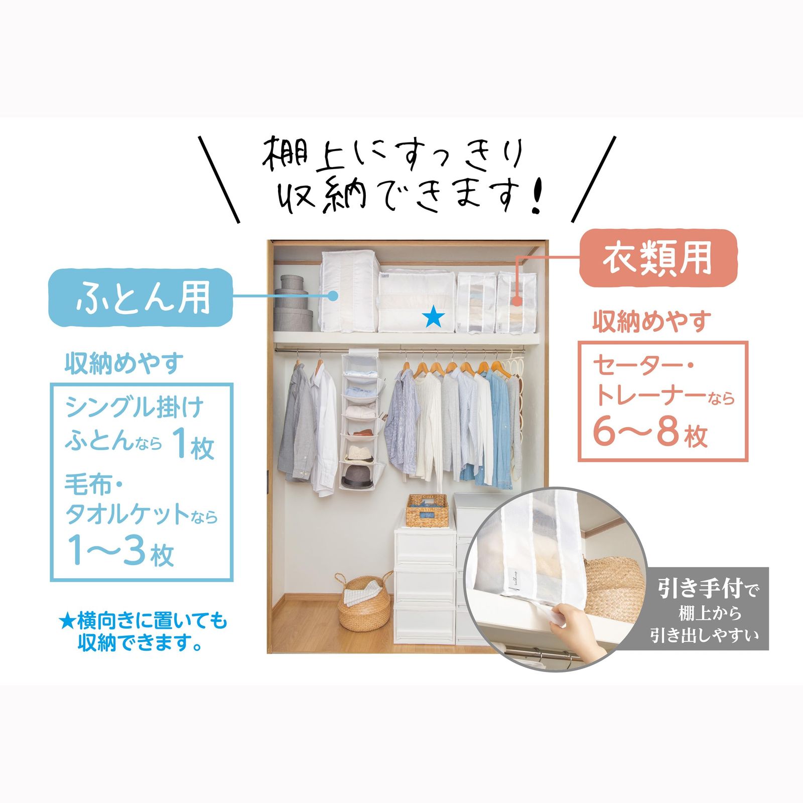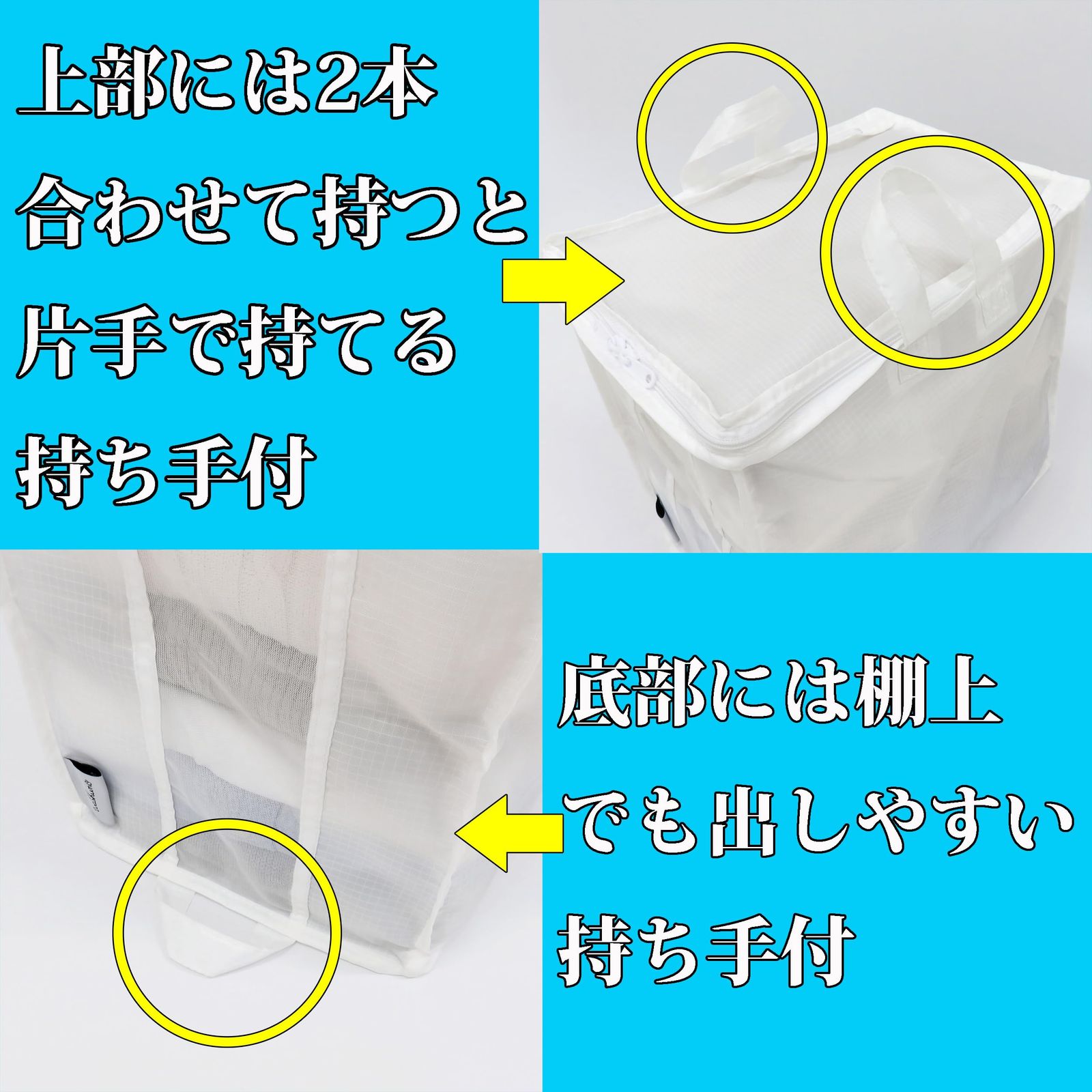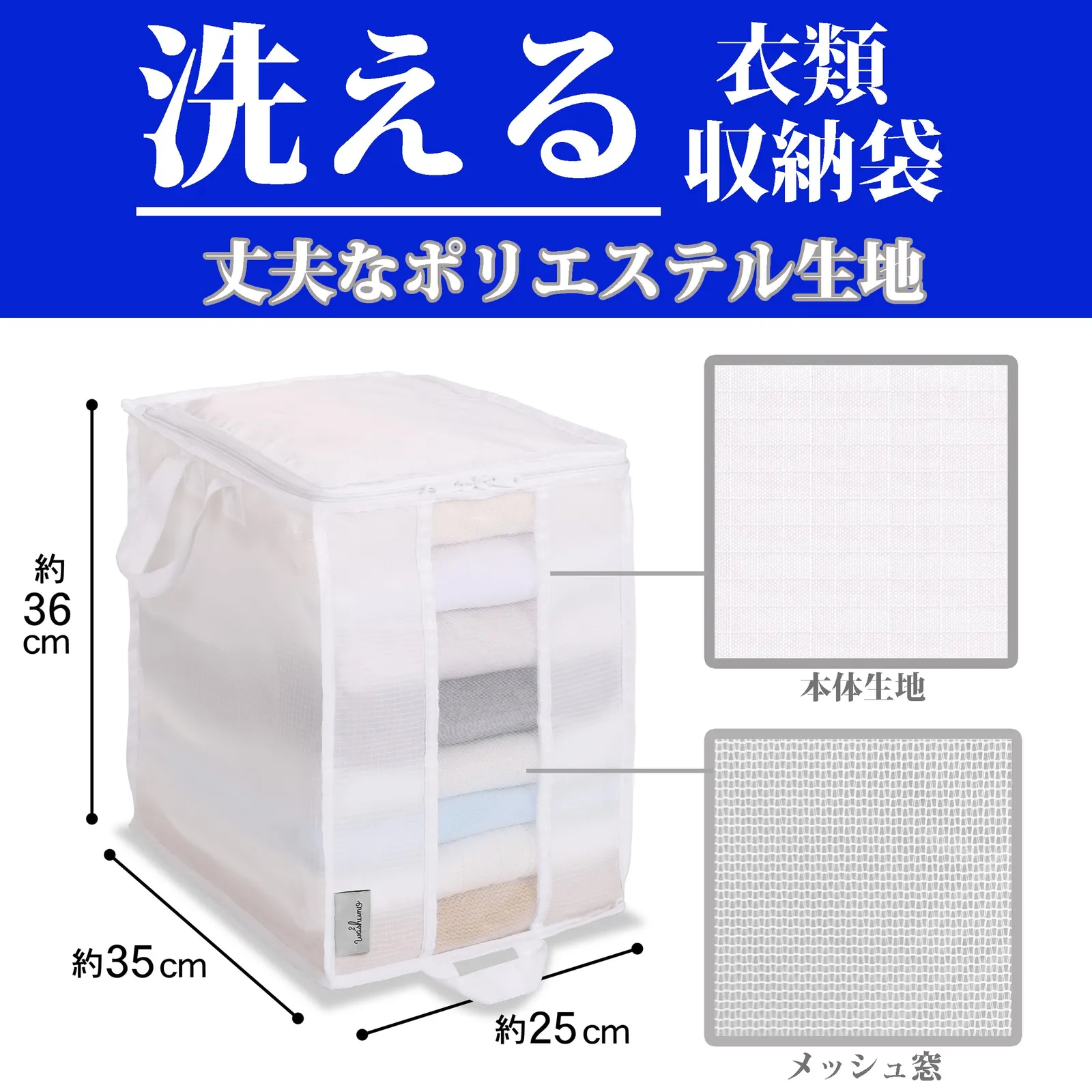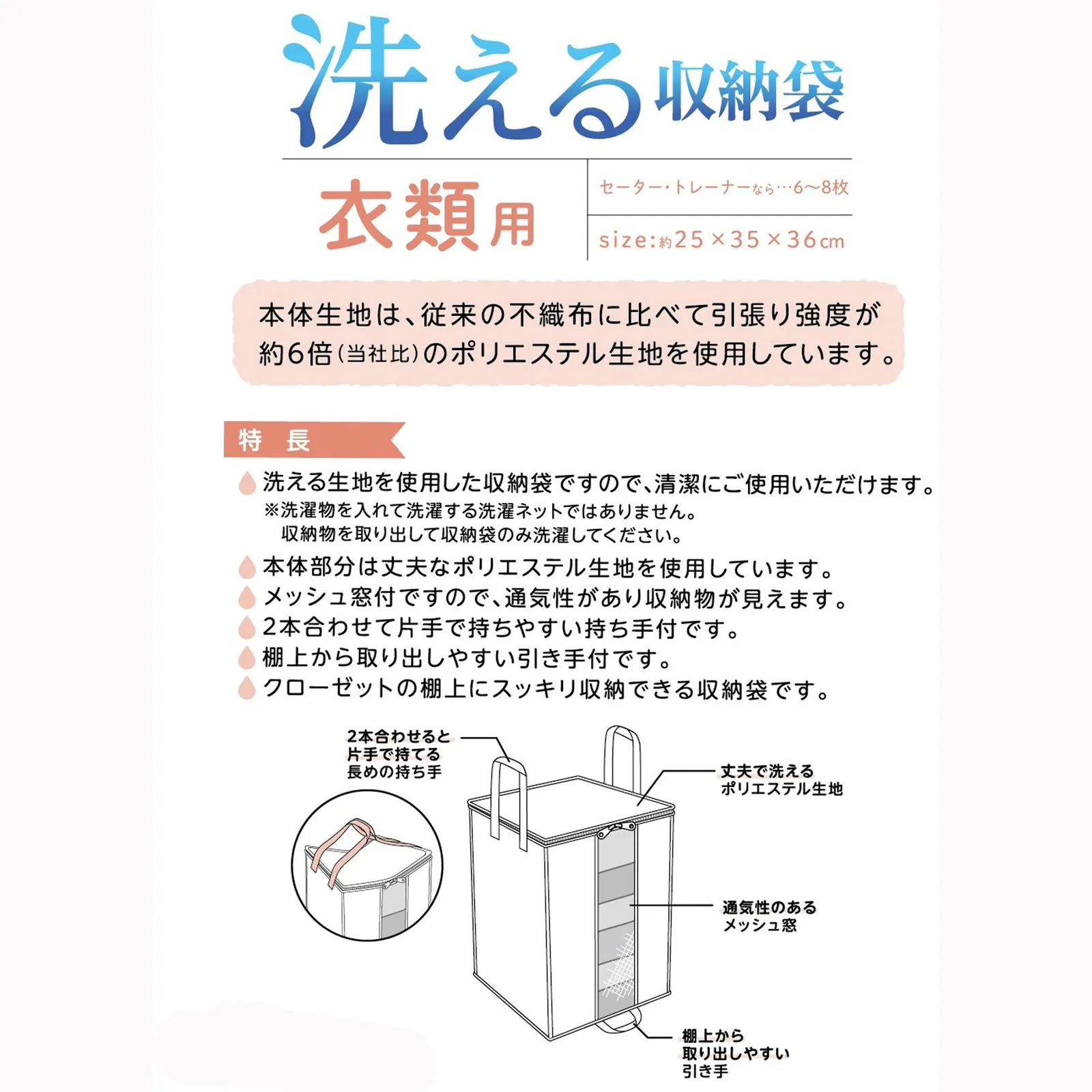 ●スウェットやセーターなど季節ものの洋服をスッキリ収納!汚れたら洗える衛生的な収納袋です。