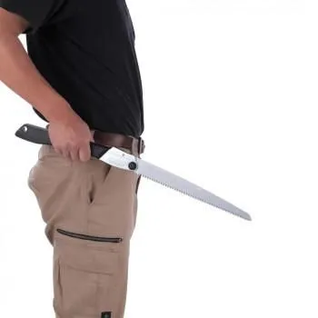 ■ラッピング(包装)対応不可です。 ゴムボーイは、木柄が主流だった時代にゴムグリップを採用し、現在まで35年以上、改良を重ねつつ歩んできた折込鋸です。アサリなし刃で切り口が綺麗に仕上がり、握りやすい柄により作業を快適に行えます。また、刃の数ヶ所に施したメーカーオリジナルの特殊目立て「未来目」が、対象物の繊維方向を問わず切断力を向上させます。本体と同サイズのゴムボーイシリーズ替刃と互換性があるため、用途が広げられるのもメリット! 折込式で、プッシュボタンを押しながら安全に刃の開閉ができ、持ち運びや保管にも便利です。 ※改良のため予告なく、仕様・デザインを変更する場合がありますので予めご了承ください。 サイズ収納時:335×65×20mm、使用時:620×80×20mm、刃渡り:300mm 個装サイズ:39.8×9.5×1.8cm 重量320g 個装重量:360g 素材・材質刃:鋼(SK-4)、柄:エラストマー樹脂 仕様目数:10枚目、切幅:1.3mm 生産国中国 fk094igrjs 生木にも乾燥木材にも、幅広い用途で活躍 商品番号:ab-1959966 ※代引き不可 同梱不可※北海道、沖縄、離島送料は別途お見積り。※手配完了後は、ご注文キャンセルを承る事が出来ません。何かございましたら事前にお問い合わせ下さい。