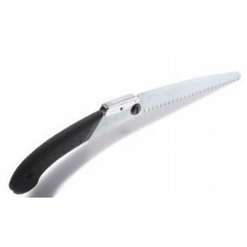 果樹園、造園業の方はもちろんのこと、女性のご愛用者様も多い、軽量で疲れにくい折込鋸です。ハンドルにアルミを用いることで軽量化しました。また、比較的薄いアサリなし刃なので軽い力で挽くことができます。刃の角度は2段階調節ができ、状況に合わせてご使用いただけます。緩やかにカーブしたハンドルで、エンド部分への指のかかりも良く、挽きやすくなっています。
