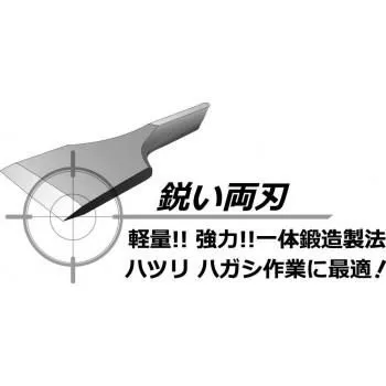先端は両刃で鋭い刃先が、切断、ハガシ、はつり等の作業効率をアップさせます。軽量でバランスの取れた設計になっています。鍛造品で強力な破砕力を生み出します。コンクリートのはつり、アスファルトの破砕、カット作業や、Pタイル、クッションフロアー等の貼り替え作業、ラインファルト作業、アスファルトの切断に。