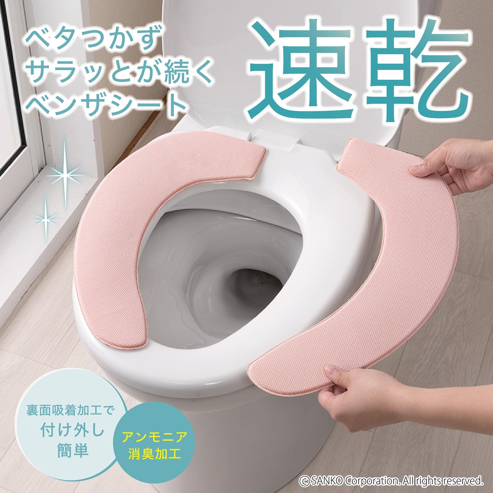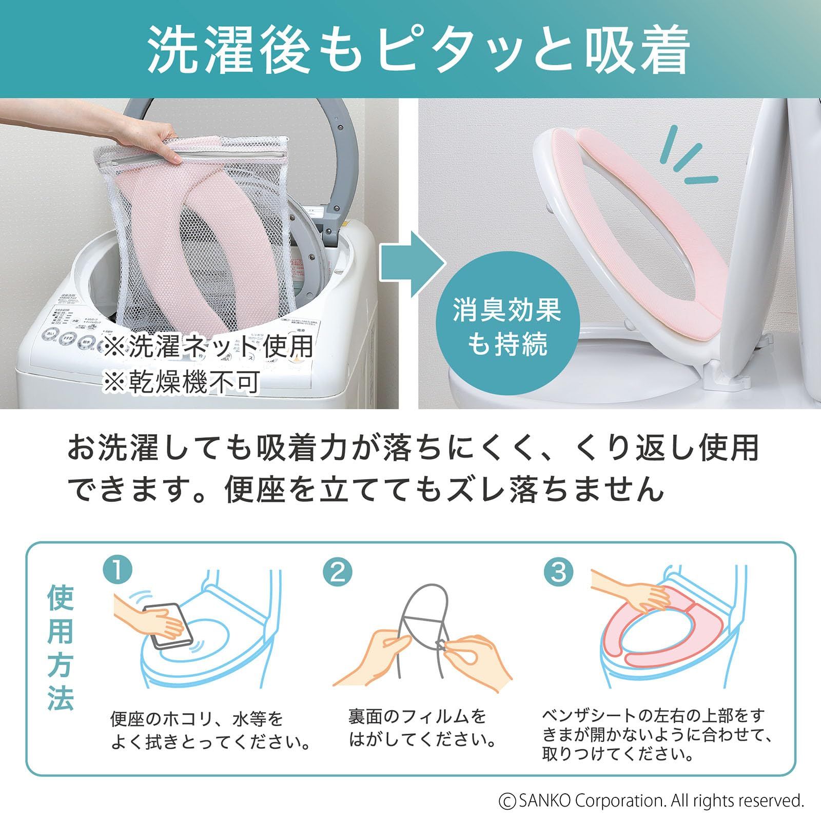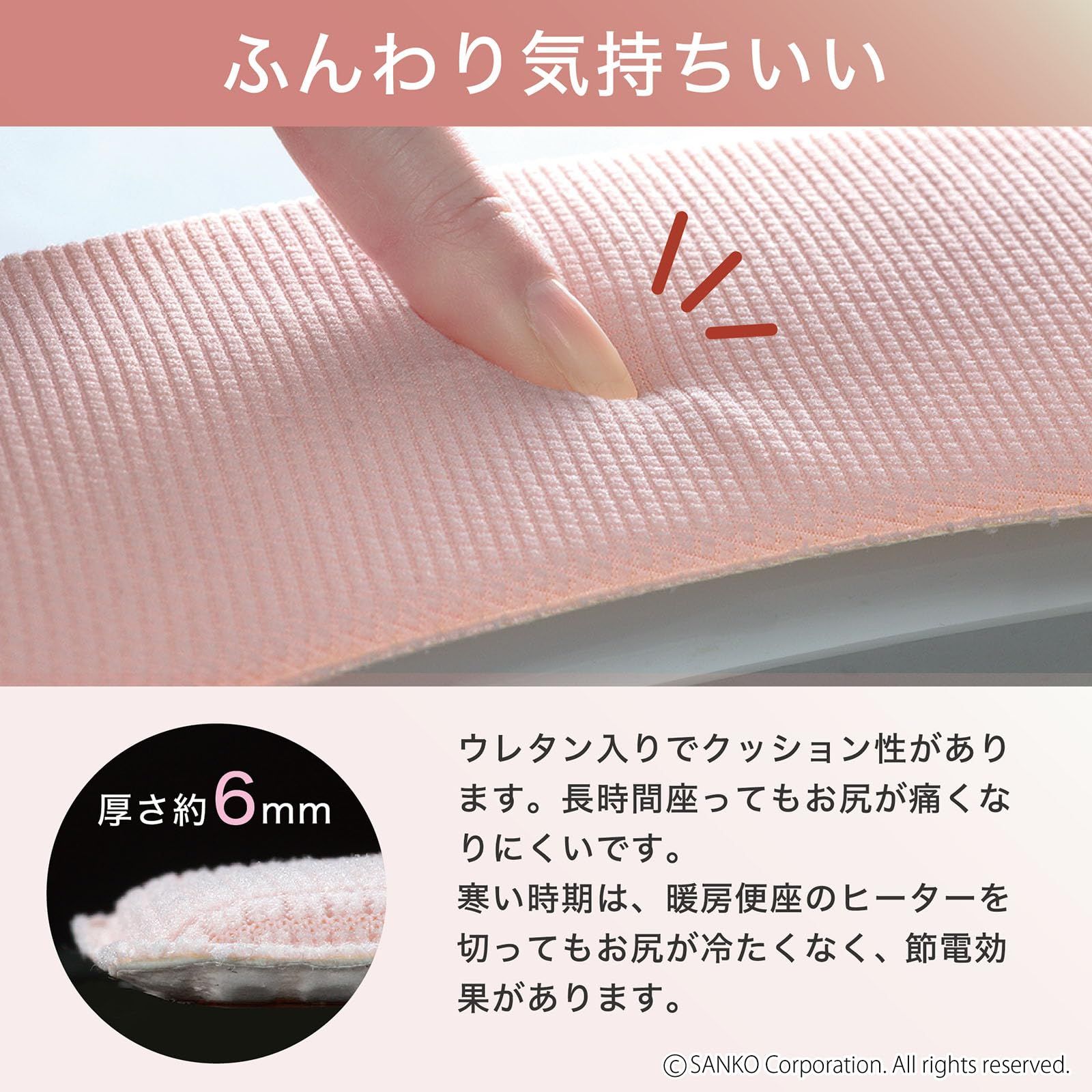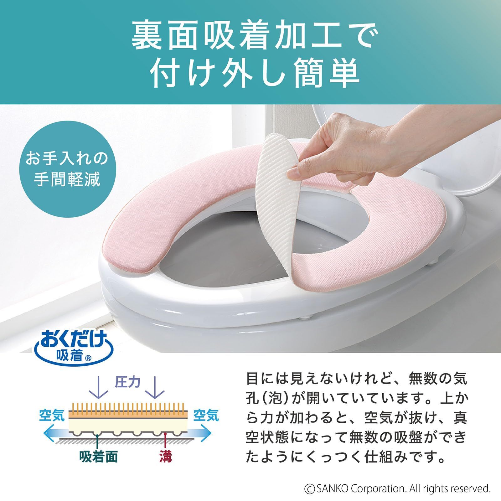 新品 【日本製 消臭 洗える】サンコー ずれない さらっとタイプ トイレ 便座カバー 便座シート 6mm ソフトピンク おくだけ吸着 KN-56