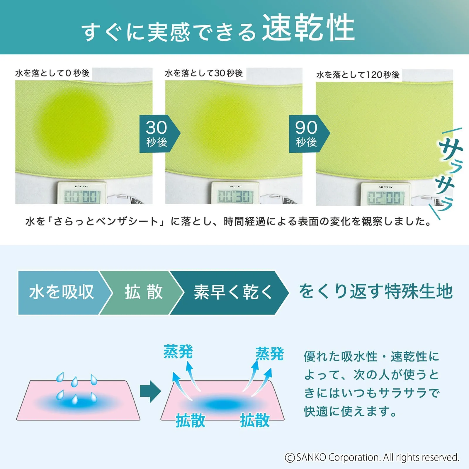 吸水速乾生地を使用、汗をかいてもベタつかない吸着ベンザシートです。