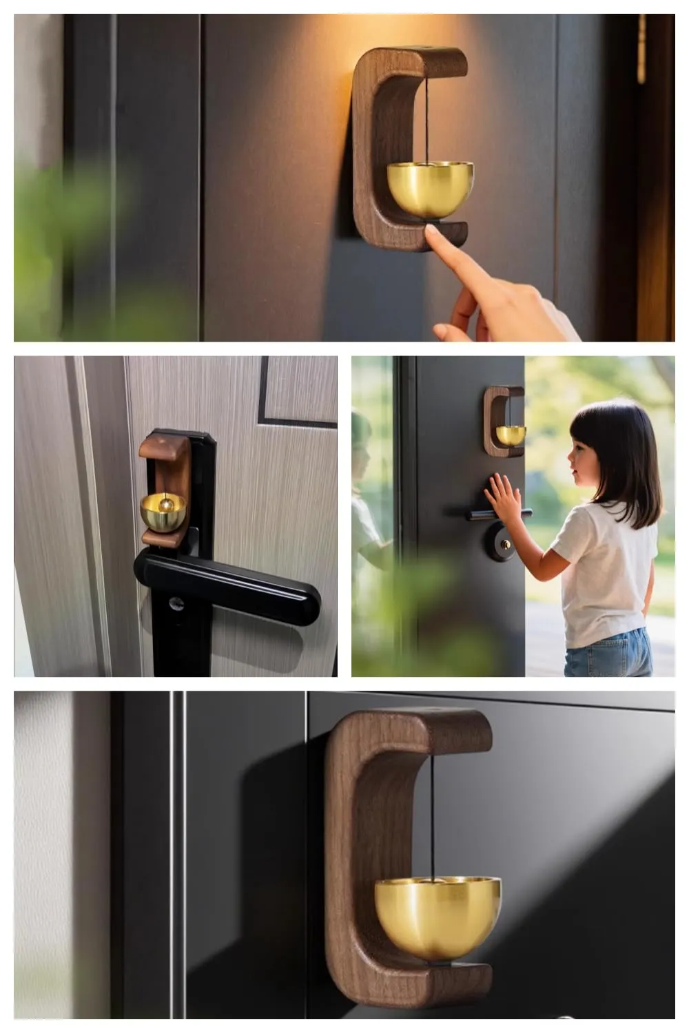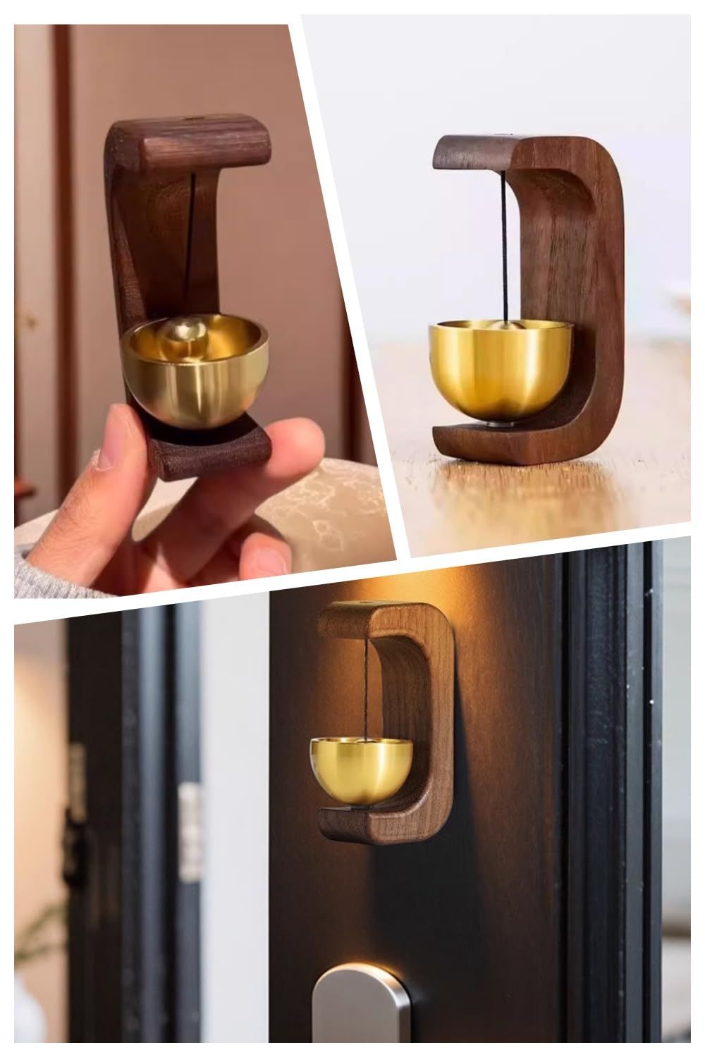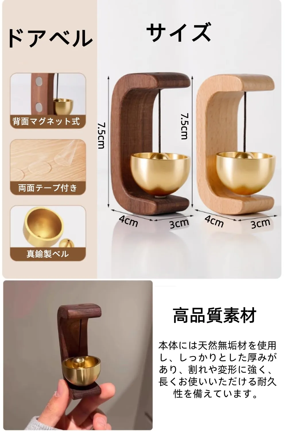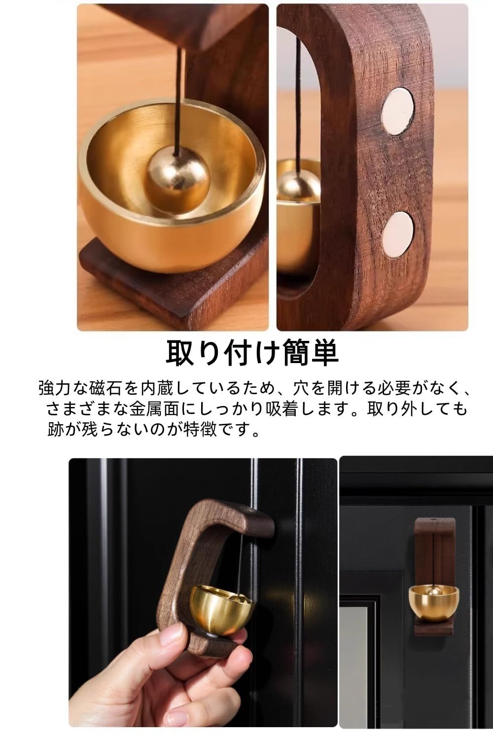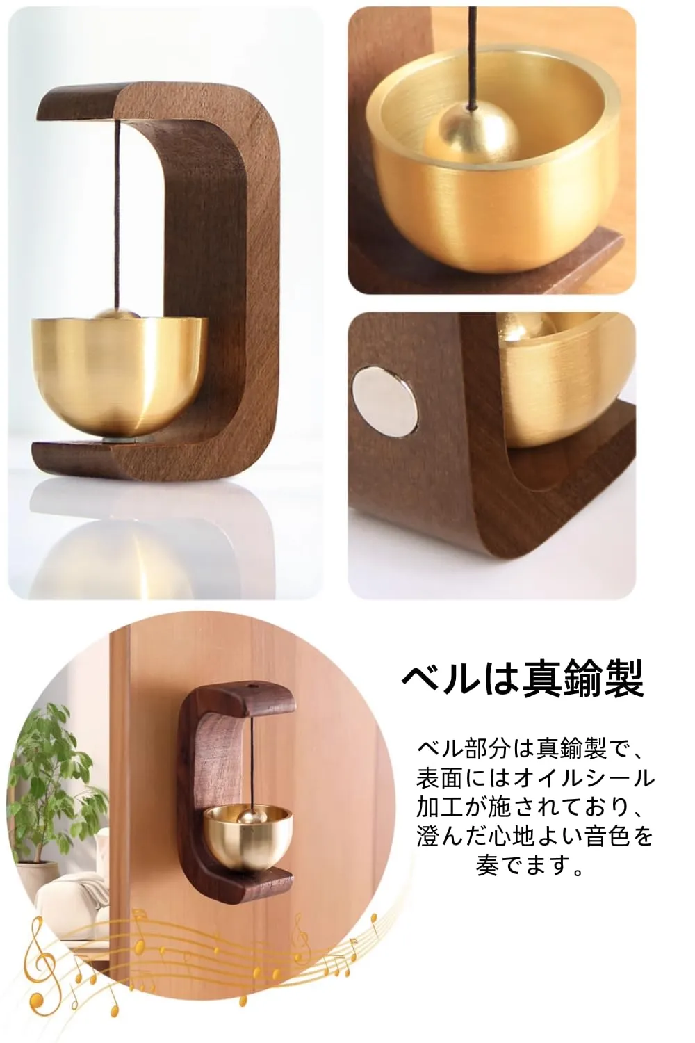 新品 YFFSFDC ドアベル 玄関チャイム 木製 真鍮 ドア鈴 玄関ベル 入り口 鈴 壁掛け 両面テープ付き 取付簡単 ドアチャイム 冷蔵庫ドア 引き戸 装飾 ホーム用 店舗用 プレゼント用 (ウォールナット)