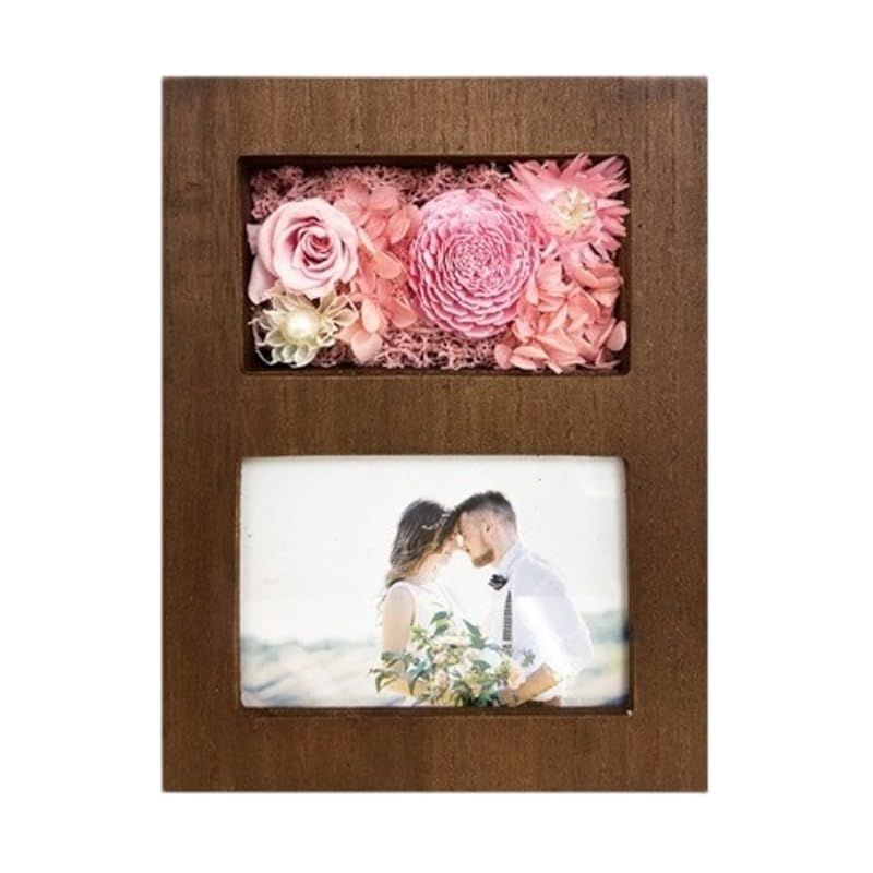 【新品】 キューフラ(Q-FLA) アレンジ フォトフレーム プリザーブドフラワー ブラウン ピンク 母の日 ギフト 贈り物 1