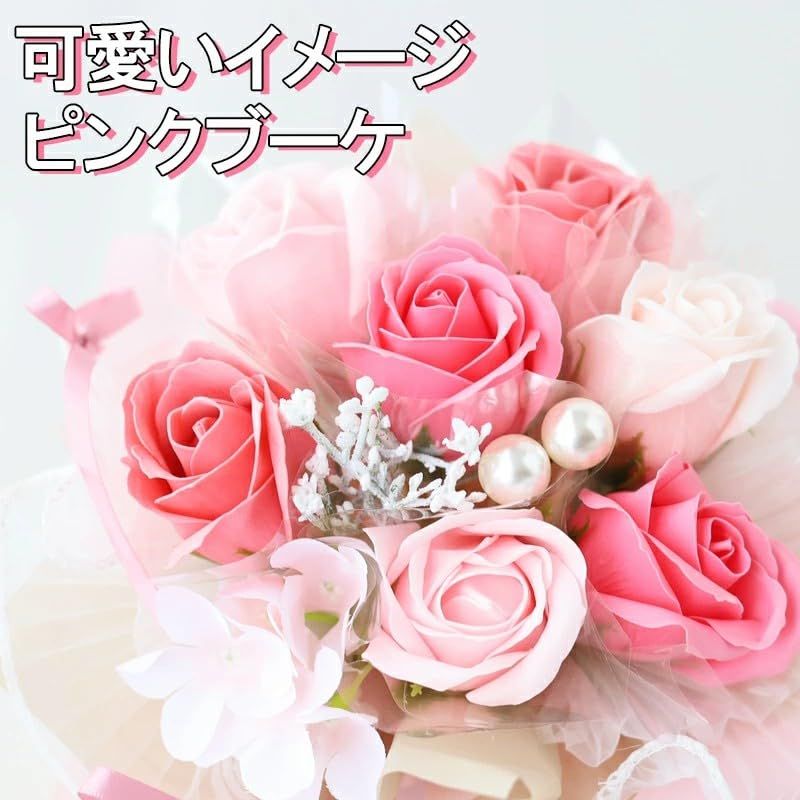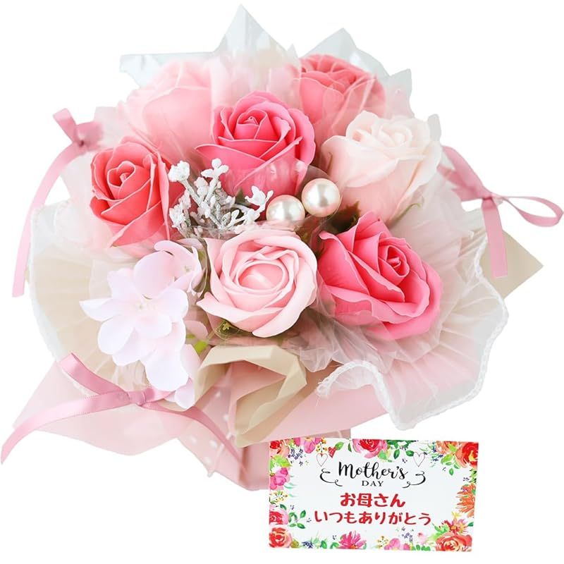 【新品】 母の日 ギフト 2026 花 プレゼント ソープフラワー シャボンフラワー バラ ブーケ 枯れない花 パール 贈り物 (バラ ピンク) 1
