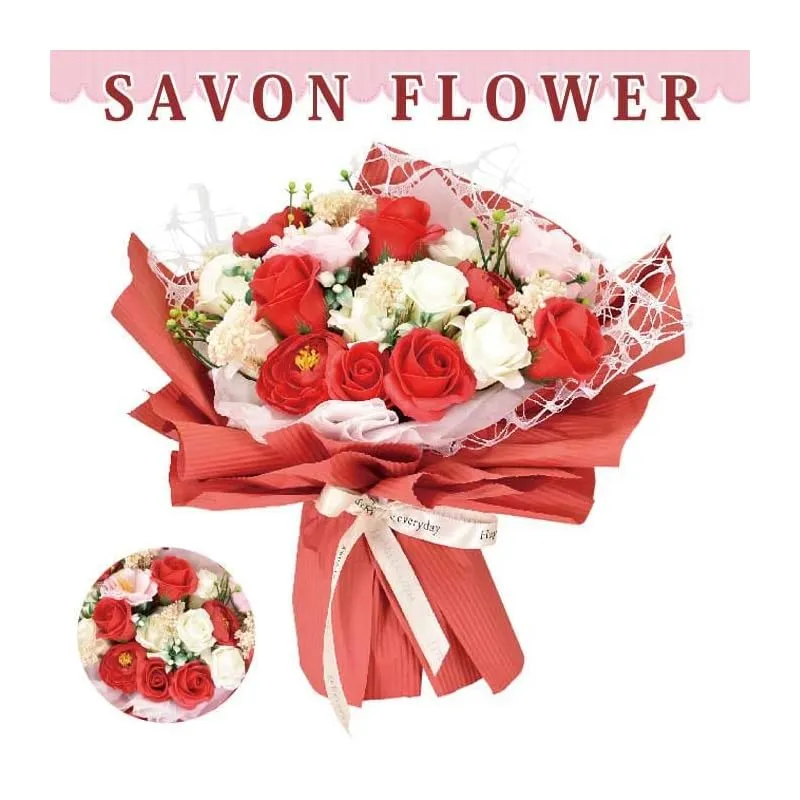 【新品】 シャボンフラワー【香りがよい】ソープフラワー ブーケ レッド 誕生日 プレゼント ギフト せっけんのお花 バラ アロマ 石鹸 花 1