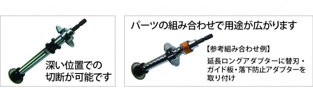 機能:内径カッターを110mm延長することでさらに深い位置で塩ビ管を切断することできます。