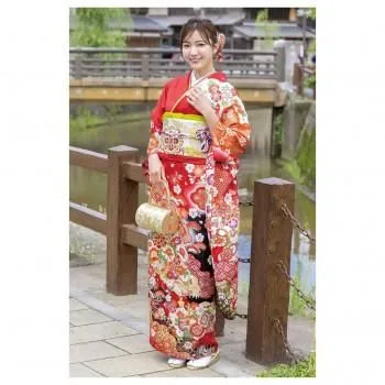 振袖(ふりそで)は、身頃と袖との縫いつけ部分を少なくして「振り」を作った袖をもつ着物。現代では若い女性の、黒留袖や色留袖、訪問着に相当する格式の礼装です。成人式、結婚式の花嫁衣装・参列者双方で着用される機会が多く、現代では未婚女性の第一礼装とされています。振袖は、現代では若い未婚の女性が着用するものと見なされる場合が多いですが、本来は着用者が未婚か既婚かが問題ではなく、若い女性用の和服でした。