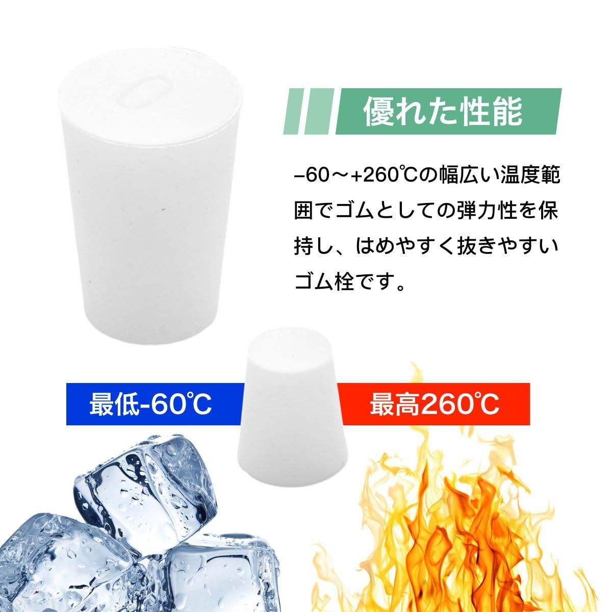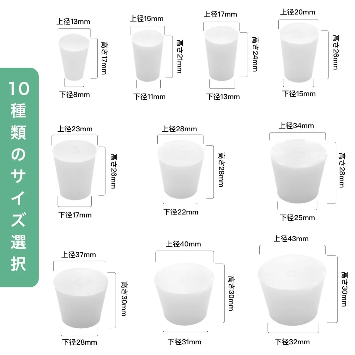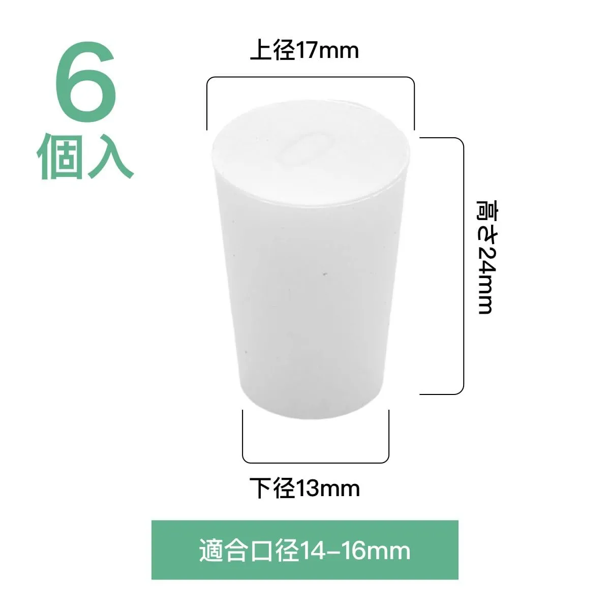 シリコンゴム栓6個入セットは、最大250℃までの耐熱性を備え、無毒無臭で柔軟性と耐久性があります。上径17mm、下径13mm、高さ24mmのサイズは、口径14-16mmに適しており、様々な用途に対応可能。
