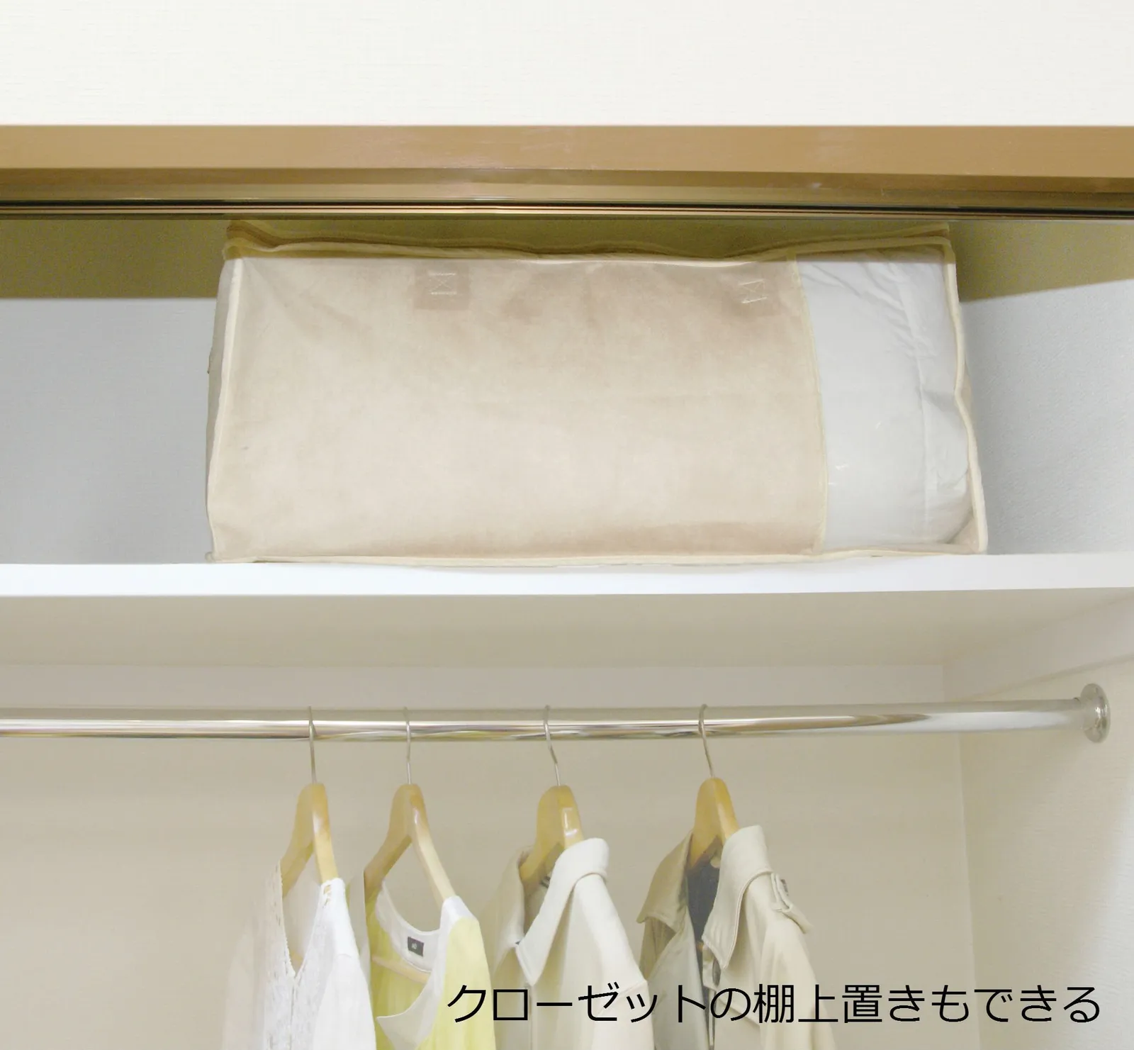 ●かさを抑えるベルト付きで、かさばる羽毛ふとんもスッキリ収納できる