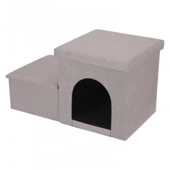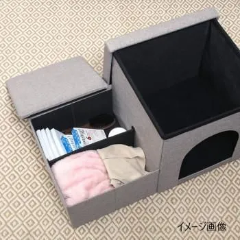 不二貿易 C/D:53724 収納付きペットステップ&ハウス ライトグレー