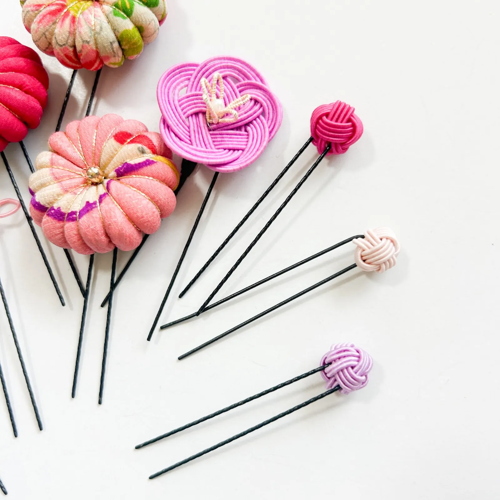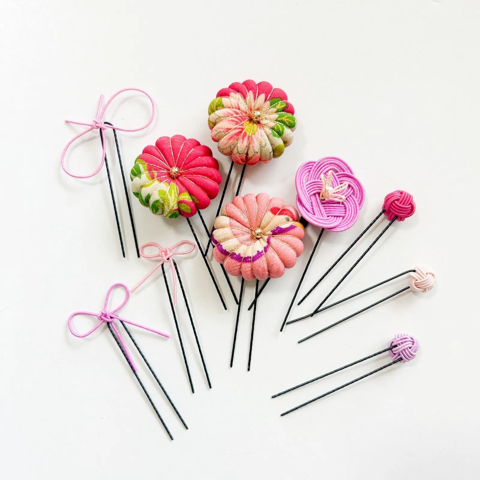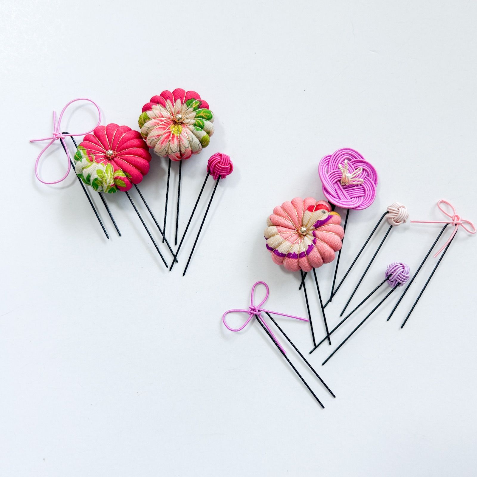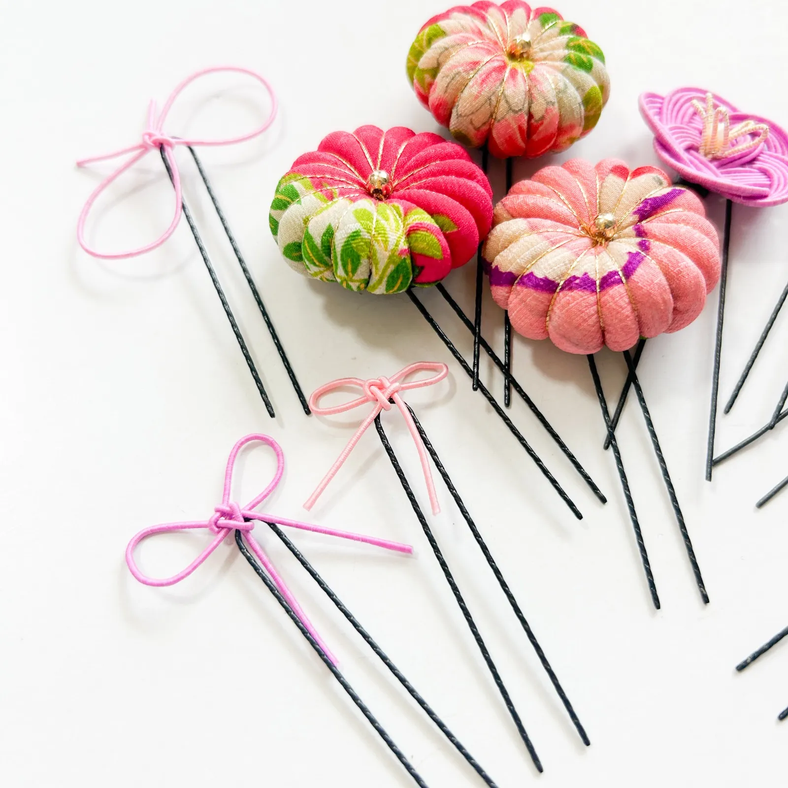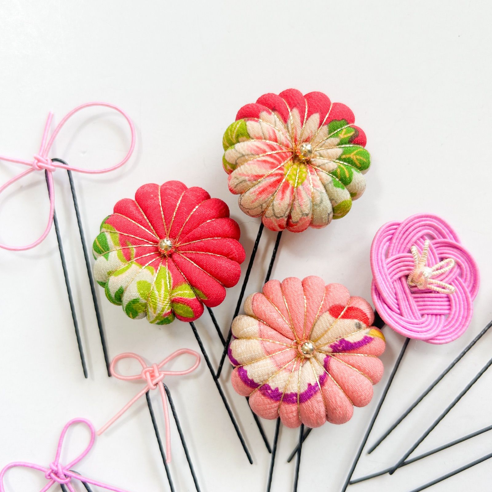 昔の貴重なアンティークの着物でつくった髪飾りのセットです。